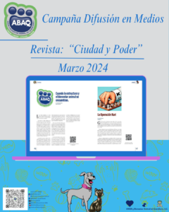 Se implementó campaña de difusión en medios para la revista «Ciudad y poder», la cual incluyó un artículo: «Cuando la estructura y el bienestar animal se encuentran» en su publicación de Marzo 2024.